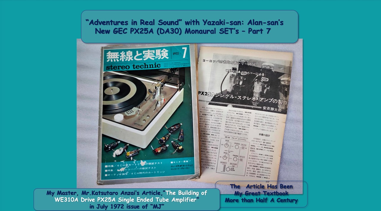 “Adventures in Real Sound” with Yazaki-san: Alan-san’s New GEC PX25A (DA30) Monaural SET’s – Part 7