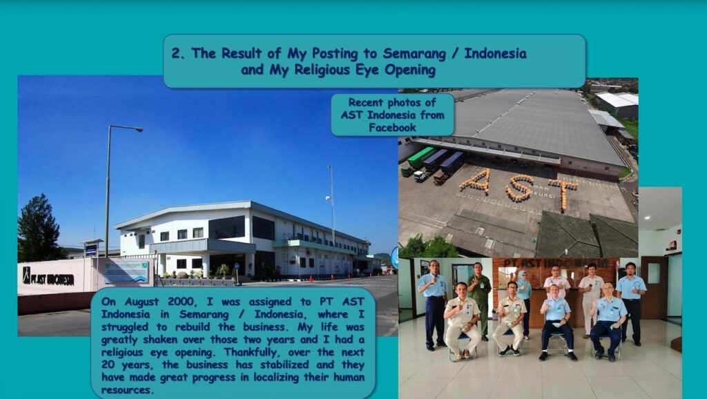 Even so, it was at just the right time that I first learned of the existence of the subsidiary company called AST Indonesia in Semarang, Indonesia, that was proposed to me. And so, rather than being just an engineer, I was now being asked to take charge of the management of this subsidiary, with the responsibility of quickly turning it into a profitable business.