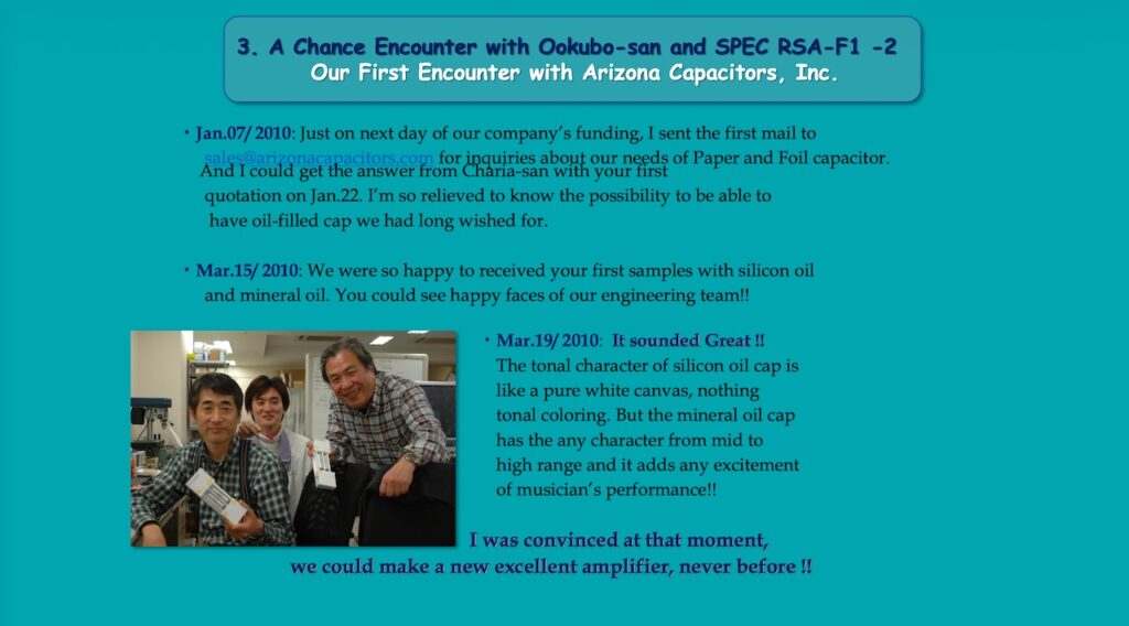 With our shared interest in audio hobby and Ookubo-san's straightforward personality, it didn't take long for us to become close friends. Ookubo-san seemed to have believed in me and my audio sensibility from the start, and the first thing he did when we met and became close was purchase our RSA-F1, which was SPEC Corp.'s top model at the time and introduced to the market in early fall 2010. It boasted a very refined sound, even by today's standards.
