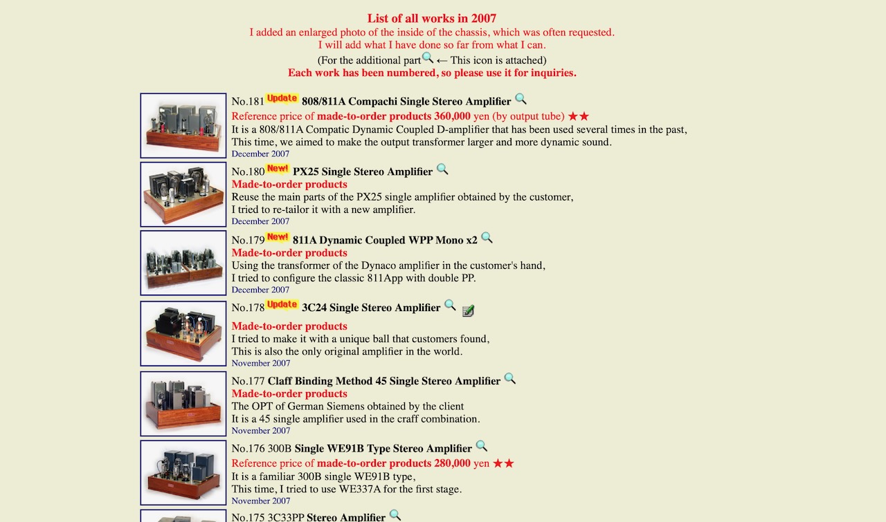 Well, so sorry for that, “Valves' World”, the workshop that brought these beautiful tube amplifiers to the world, unfortunately no longer exists now, because of both the first master and the second-generation master, with whom I had later worked, having passed away.