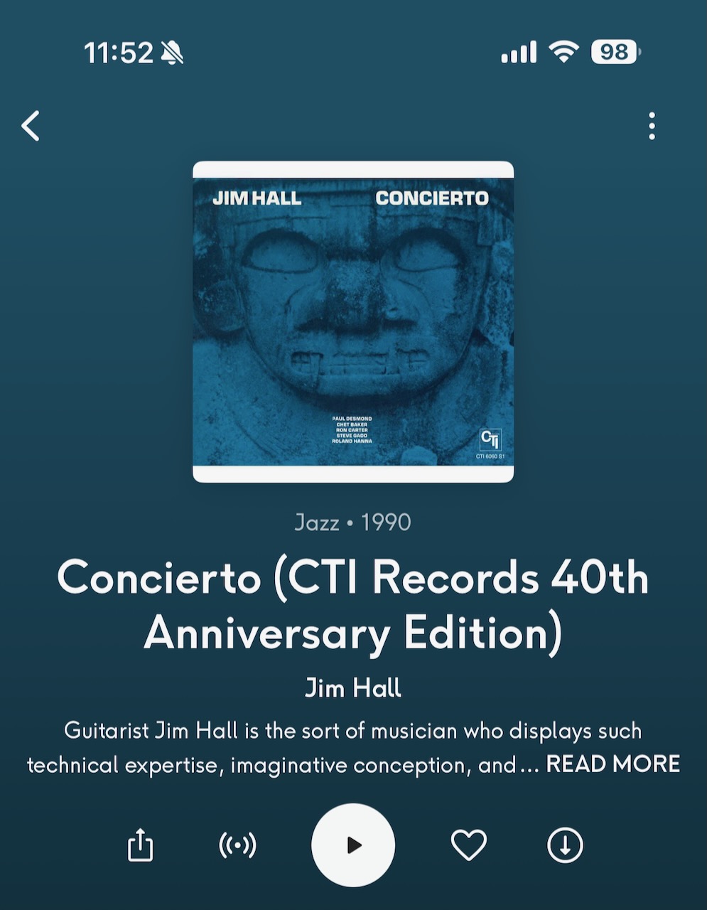 The first album is Jim Hall's Concierto featuring Jim Hall (guitar), Paul Desmond (alto sax), Roland Hanna (piano), Ron Carter (bass), and Steve Gadd (drums).