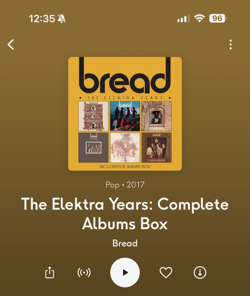 It turns out there were all kinds of Bread albums to listen to on Qobuz, and the Bread Elektra Years album box set above was the most comparable to the Bread Retrospective CD box set I have in terms of content.