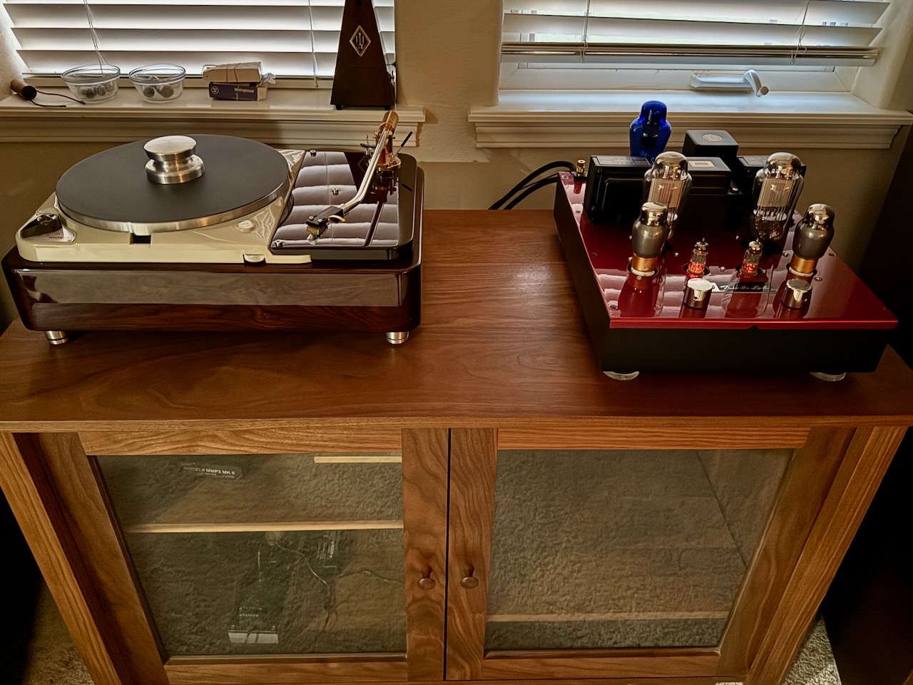 The Stokowski Altecs with their Duelund tinned-copper CAST crossovers, with my restored vintage Thorens TD124 (by Artisan Fidelity) and Yazaki-san's hot-rodded vacuum tube Douk Audio streaming DAC as sources, and amplified with the amazing little Triode Lab 45 EVO SET integrated amplifier, are combination that is a match made in heaven.