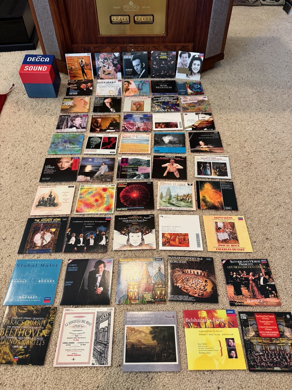 Take The Decca Sound box set (478 2826) that I bought used recently on Discogs for $125, which includes 50 CDs of some of the greatest recordings of Baroque, Classical, Romantic, Modern, Oratorio, and Opera performances in history.