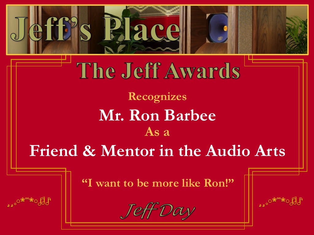 - A Friend & Mentor In The Audio Arts Award to Ron Barbee for making my world a much better place to live in.