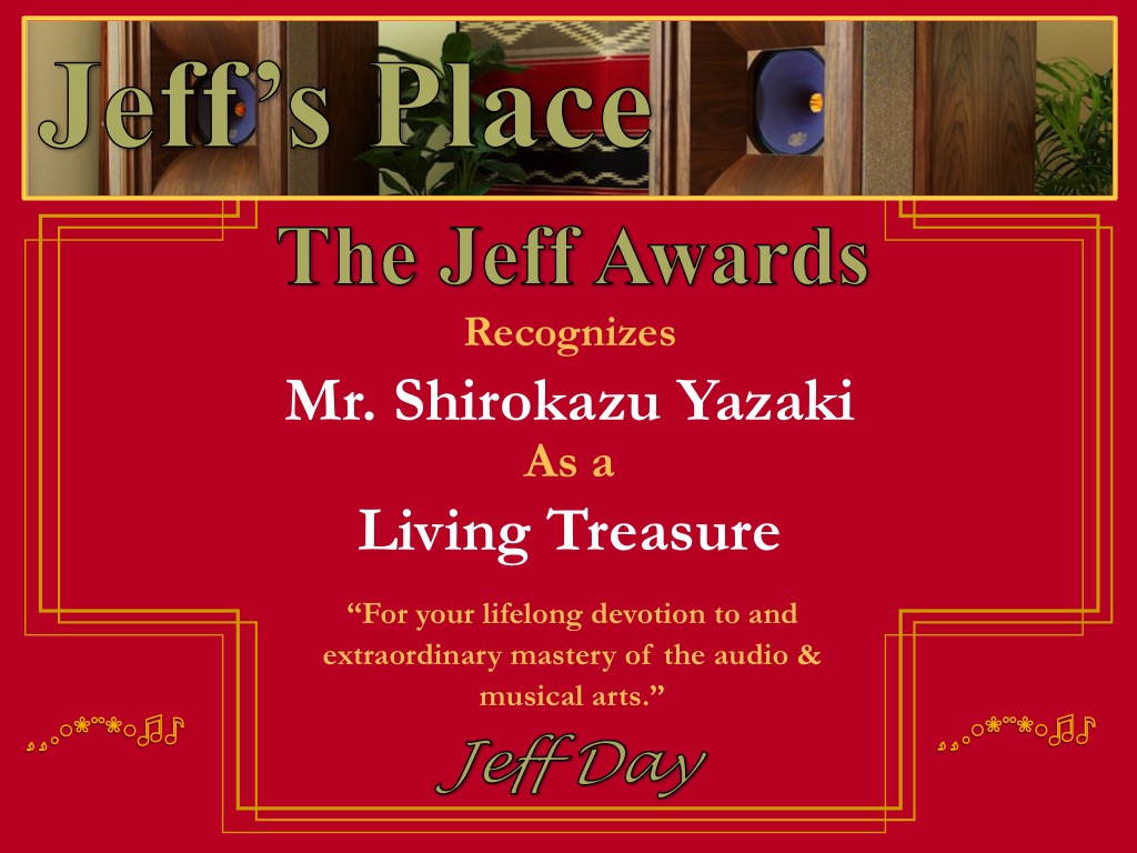 - A Living Treasure Award to Mr. Shirokazu Yazaki for his extraordinary Real Sound contributions to the audio & musical arts!
