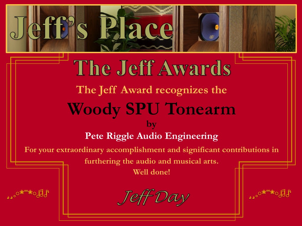 - A Woody SPU Tonearm Award to Pete Riggle of Pete Riggle Audio Engineering.