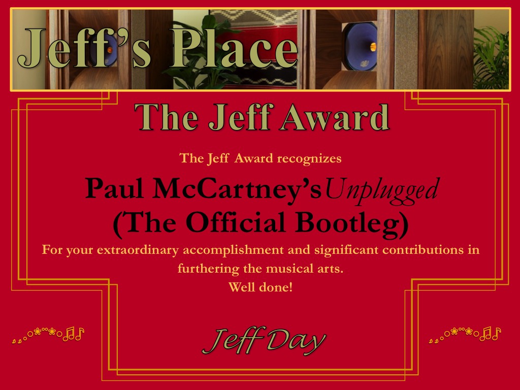 - A Vinyl Award for Paul McCartney's Unplugged (The Official Bootleg) album.