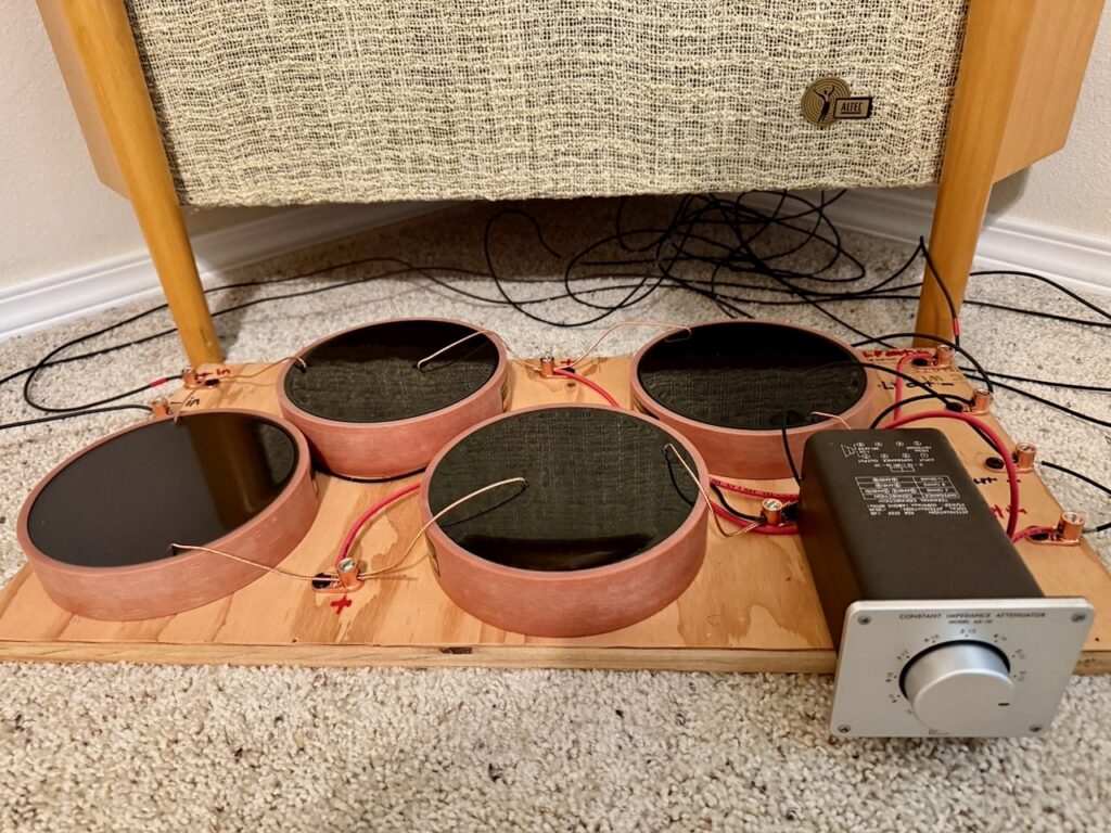 Notice the four screws in the center of the back panel labeled 3, 4, 5, and 6, as well as the jumper between 4 and 6. The AS-10 can accommodate 4 Ohm, 8 Ohm, and 16 Ohm drivers depending on where the jumper is positioned. When the jumper is positioned between 4 and 6 the AS-10 is setup for 16 Ohm drivers, like my vintage Altec drivers.