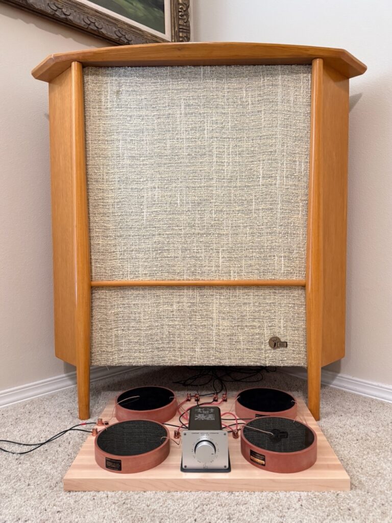 View of Duelund-Corona 832A Project loudspeaker in room boundary position.