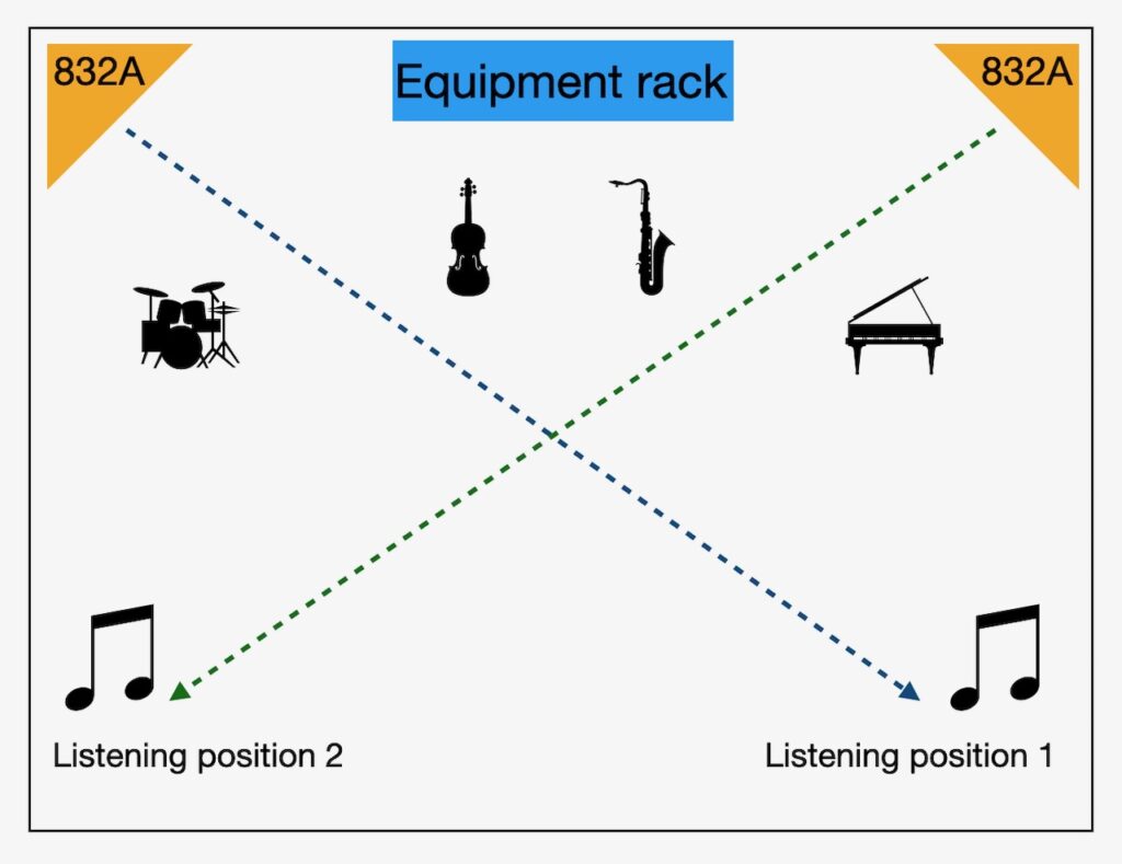 Another interesting aspect is that the soundstage and imaging isn't affected by where I sit in the room. Whether in position 1 or 2, I never hear the soundstage pull to one speaker or the other, like I would in an audiophile positioning loudspeaker setup. It always like I'm in the "center" listening position, even though there isn't one.