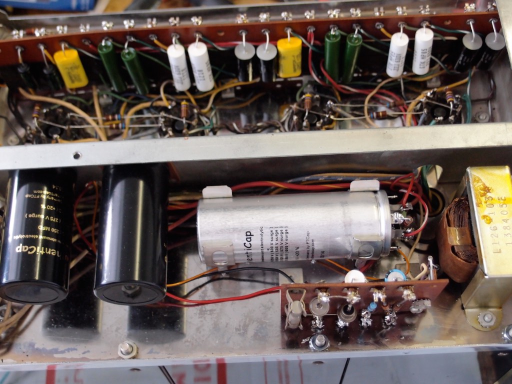 Here it is, just finished and been running for three hours now. Sounding super sweet and looking darn good if I may say so myself. Chassis rechromed and reprinted, base powder coated. Completely rebuilt inside, new caps a combo of paper in oils, polypropylene, mylar, and silver mica. All resistors are new carbon comps. Only cosmetic issue are some scratches on top of transformers. I do not have film for those silkscreens (no stickers on those like on the 30s), therefore do not repaint transformers.